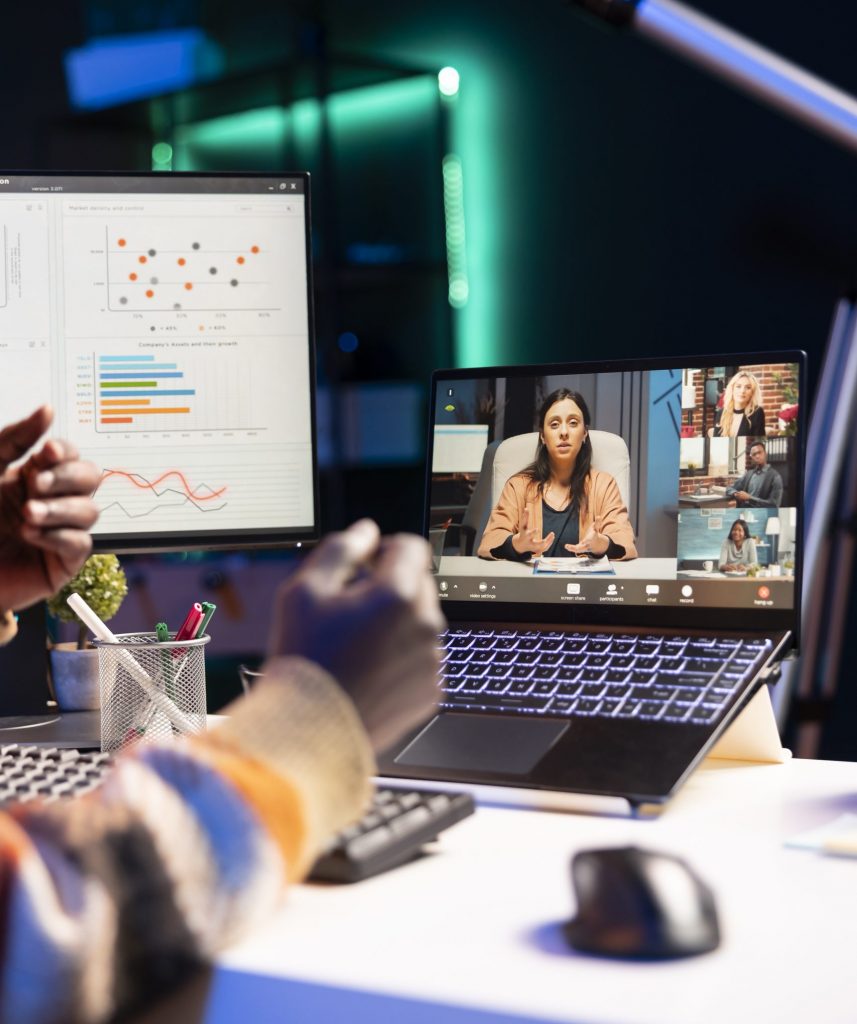 En la sesión sincrónica virtual, el coach desarrolla la clase usando materiales estructurados, apoyos visuales y recursos del programa para trabajar comprensión, vocabulario, estructuras, speaking y aplicación práctica en contextos de negocio. El objetivo no es solo “ver contenido”, sino usar el idioma en actividades guiadas que ayuden al estudiante a participar, responder, explicar ideas, interactuar y ganar seguridad en inglés profesional.